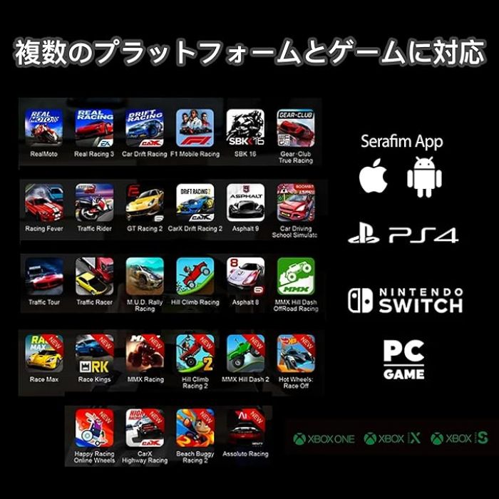 Serafim モバイルゲーミングコントローラー スマホゲームパッド ゲームコントローラー ステアリングコントローラー スマホ、iOS、Android、PS4、PS3、Switch、ゲーム機、PC、パソコン向けハンドルコントローラー: Serafim R1+